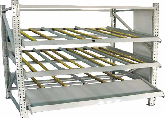 Hal ini cocok untuk menyimpan barang dengan jumlah besar dan jenis yang sama mengambil keuntungan penuh dari ruang penyimpanan.Rem harus dilengkapi jika lerengnya panjang; pemisah dan penyangga diperlukan untuk mencegah barang berbalik.